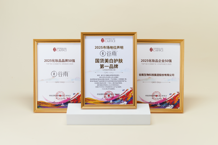 在此次权威评选中,国货先锋品牌谷雨凭借突破性的科技创新能力、独特的品牌文化构建能力以及消费市场出色的口碑及销售表现,成功登榜“2025化妆品企业50强”及“2025化妆品品牌50强”,同时更揽获“2025品类冠军·国货美白护肤第一品牌”市场地位的权威认证。