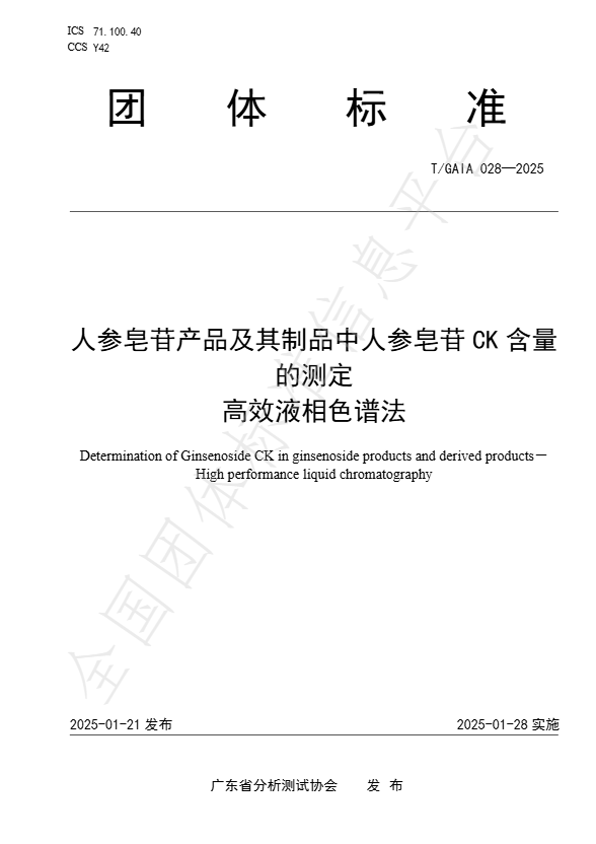 2025伊始,谷雨作为核心起草单位及方法验证单位参与的团体标准《人参皂苷产品及其制品中人参皂苷CK含量的测定高效液相色谱法》正式发布(标准编号:T/GAIA 028—2025)。该标准经广东省分析测试协会归口审查,批准发布实施。据悉,此项标准的制定和实施,可精确量化人参产品中关键功效成分稀有人参皂苷CK的含量,为人参类产品的品质评定提供了科学可量的依据标准,以引领行业更科学、更规范地健康可持续发展。据了解,截至目前谷雨已牵头即参与11项团体标准的制定,不断推动着中国特色原料的广泛科学应用及更适合中国人肤质的护肤品开发的标准体系建设。