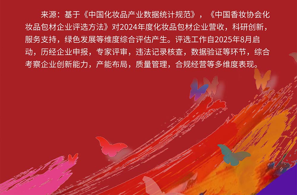 12月30日,中国香料香精化妆品工业协会(以下简称中国香妆协会)在丽水莲都隆重发布了“2025年中国化妆品包材企业TOP30入围名单”,包括阿普塔包装科技(苏州)有限公司、深圳市通产丽星科技集团有限公司、浙江正庄科技有限公司等在内的30家企业入围。