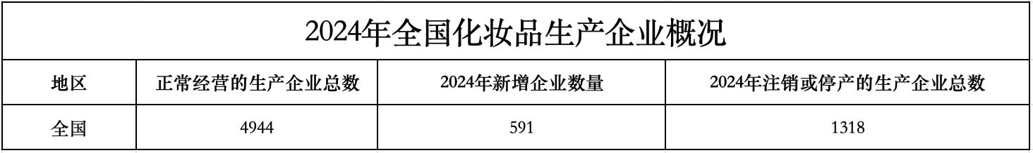 1、落后产能基本出清:2024年共关停和注销化妆品生产企业1318家,2024年生产企业数量降至4944家。
