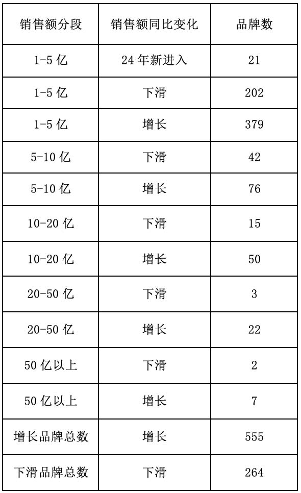 2024年交易额超1亿元的819个品牌中,65%实现正增长,新增73个亿元级品牌。