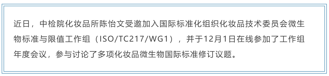 ISO/TC217/WG1主要负责制定全球化妆品微生物质量控制、安全评估及检验方法等相关国际标准,其制定的标准直接影响各国化妆品市场准入与国际贸易。