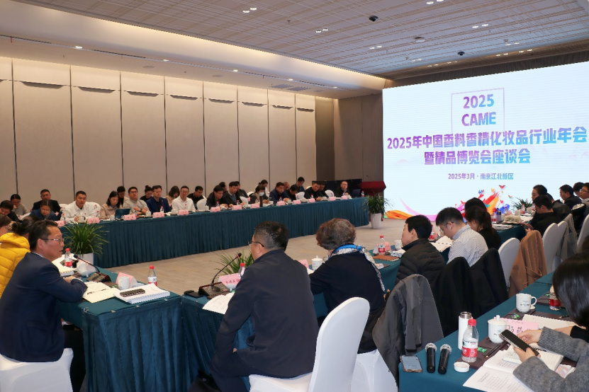 毫无疑问,2025年是提振消费并凸显精品和首发经济的年度。这对于中国香料香精化妆品行业来说,既是大好的时代机遇,也是整个行业继续促进发展和拉动市场的契机。就在两天前的3月14日,2025年中国香料香精化妆品行业年会暨精品博览会座谈会(2025CAME)在南京市江北新区圆满举行,会议聚焦如何进一步提升香妆行业会展规格和质量,将其打造成香妆行业创新成果策源地、高端产品制造地、跨境通关营销地与时尚文化传播地。中国香料香精化妆品工业协会(简称“中国香妆协会”)颜江瑛理事长、王来冬副理事长、董树芬顾问、穆旻秘书长等参加了会议,国药励展展览有限责任公司副总经理马付勇等,南京市市场监管局副局长张亚军、江北新区市场监管局局长茅俊海、副局长张毛,江北新区政府部门负责人及来自南京市科研院所负责人及重点企业、行业协会代表等50余人参加了本次座谈会。这次座谈会的最大共识就是继续打造中国香妆行业的精品博览会,继续做“高品质、高规格和高精尖”的行业盛会。