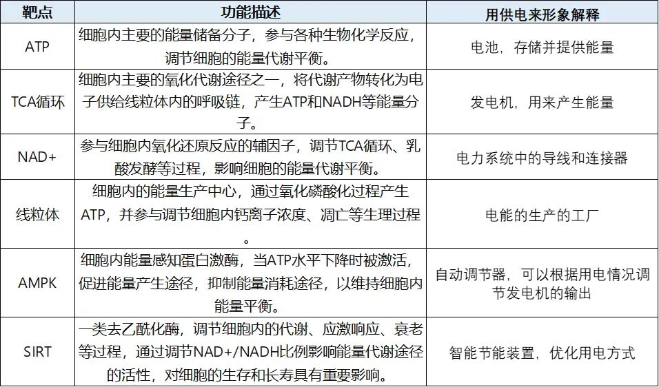 以电力供应的为例,和大家简单地解释一下,这些靶点在细胞供能中的作用,如下图所示[1]。