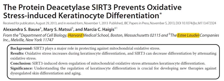 雅诗兰黛研究2:长寿基因SIRT3可以降低线粒体氧化应激水平