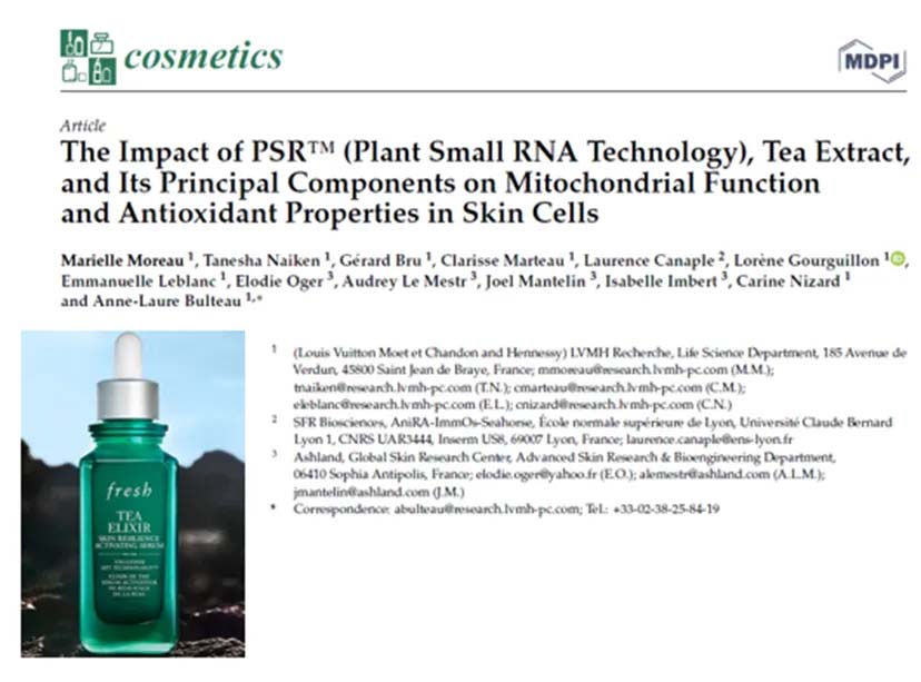 [10] The Impact of PSR™(Plant Small RNA Technology), Tea Extract, and Its Principal Components on Mitochondrial Function and Antioxidant Properties in Skin Cells[J]. Cosmetics, 2023