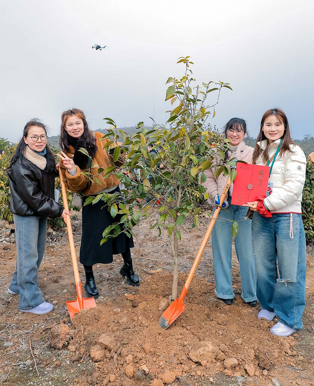 2022年,林清轩借助G60科创走廊“科创兴农公益计划”,向福建省永安市捐赠350亩红山茶花树苗,助力永安现代化农业发展和碳中和实践。这350亩红山茶花树苗为百户农民提供了就业机会,也维系了当地山茶花物种的延续。