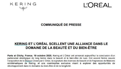 近日,一桩总额高达40亿欧元(约合332亿元人民币)的战略交易,在全球美妆与奢侈品界投下了一枚震撼弹。法国开云集团(Kering)与全球美妆巨头欧莱雅(L'Oréal)达成协议,开云集团将旗下高端香水品牌Creed及古驰(Gucci)、葆蝶家(Bottega Veneta)、巴黎世家(Balenciaga)等核心品牌未来50年的香水美妆业务授权,一并交予欧莱雅。