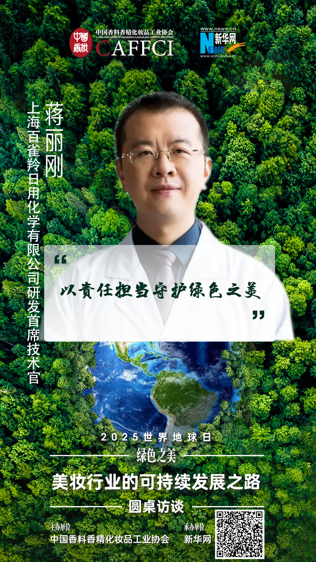 2025世界地球日之际,由中国香料香精化妆品工业协会主办、新华网承办的“2025世界地球日——绿色之美:美妆行业的可持续发展之路圆桌访谈”活动在北京举行。上海百雀羚日用化学有限公司研发首席技术官蒋丽刚在圆桌访谈上分享了百雀羚在可持续发展领域的理念、规划、成果以及对行业的思考。