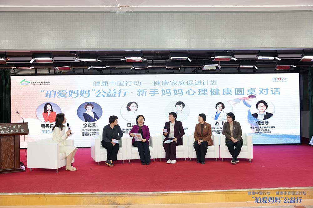 对于 “珀爱妈妈” 公益行而言,赋能一线公益讲师,是筑牢整个支持服务网络的关键基石。围绕讲师专业赋能、服务标准化落地等核心议题,活动现场,国家心理健康和精神卫生防治中心党委副书记姜雯,首都医科大学附属北京妇产医院北京妇幼保健院健康教育科主任游川,北京妇女儿童社会服务发展促进会会长、“珀爱妈妈”公益行项目执行负责人白亚琴,华东师范大学社会工作系副教授何姗姗,浙江大学医学院附属妇产科医院医院博士生导师余晓燕围绕“新手妈妈心理健康”议题展开圆桌对话。