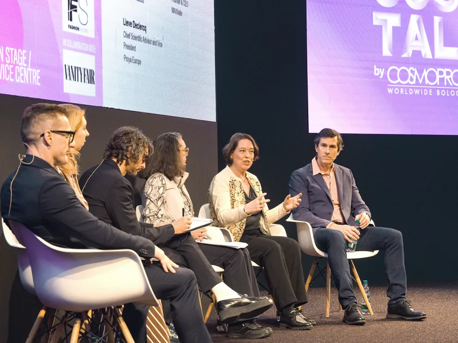 在展会核心论坛Cosmotalk中,Lieve Declercq博士作为中国美妆企业代表,受邀与来自意大利、英国等国家的业内专家围绕“跨世代科学抗衰”主题展开圆桌对话。面对全球抗衰老需求的年轻化与多元化趋势,Lieve Declercq博士分享了珀莱雅在抗衰老领域的科研洞察与实践经验,以及基于全球消费者需求变化而采取的研发创新策略。