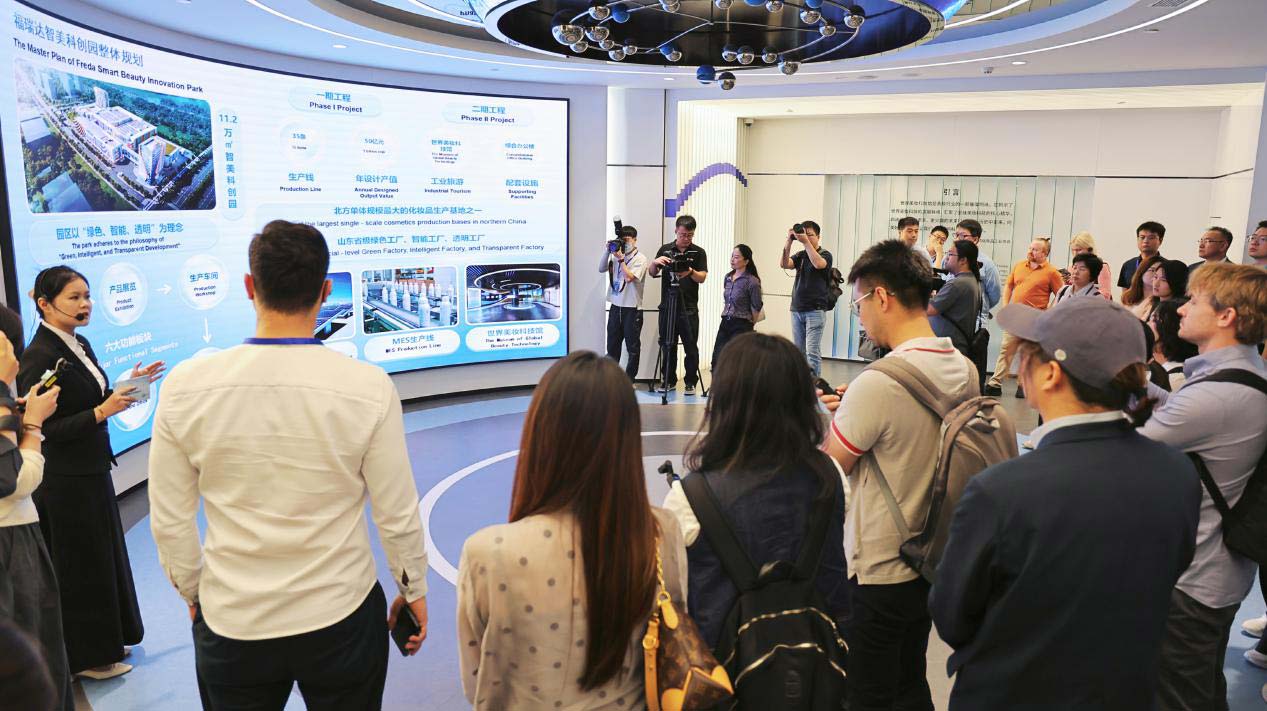 9月18日下午,由中央宣传部主办的“外媒看中国”山东采访活动走进福瑞达智美科创园,来自美国、英国、法国、俄罗斯、韩国、新加坡等国家的媒体30余名记者,实地采访福瑞达生物股份在技术创新、智能制造、品牌打造、海外市场等情况与做法。