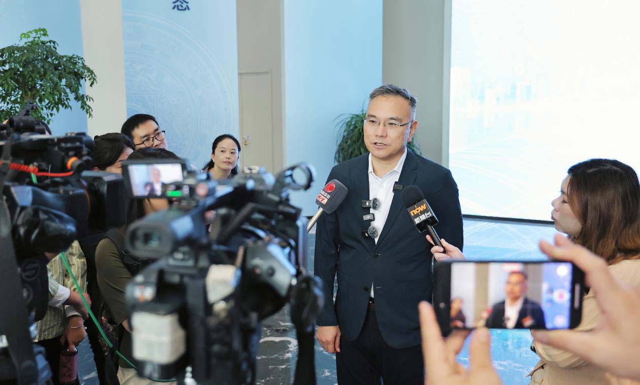参观结束后,福瑞达生物股份董事长、总经理高春明,福瑞达生物股份副总经理杨素珍接受中外记者采访,介绍企业在品牌出海、技术创新等方面的进展与成果。