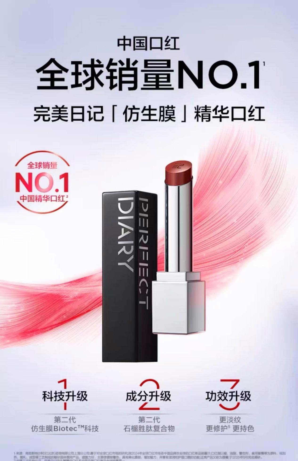 以完美日记“仿生膜”精华口红为例,自上市以来,该系列产品已累计销售超450万支,GMV突破6亿元,并持续霸榜天猫、抖音、京东等主流电商平台。经全球权威第三方机构沙利文(Frost & Sullivan)连续1年追踪的数据显示,完美日记「仿生膜」精华口红成为“中国品牌口红单品全球销量第一”。