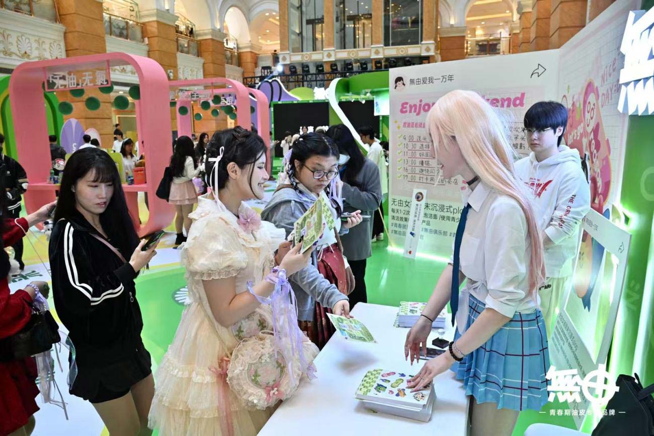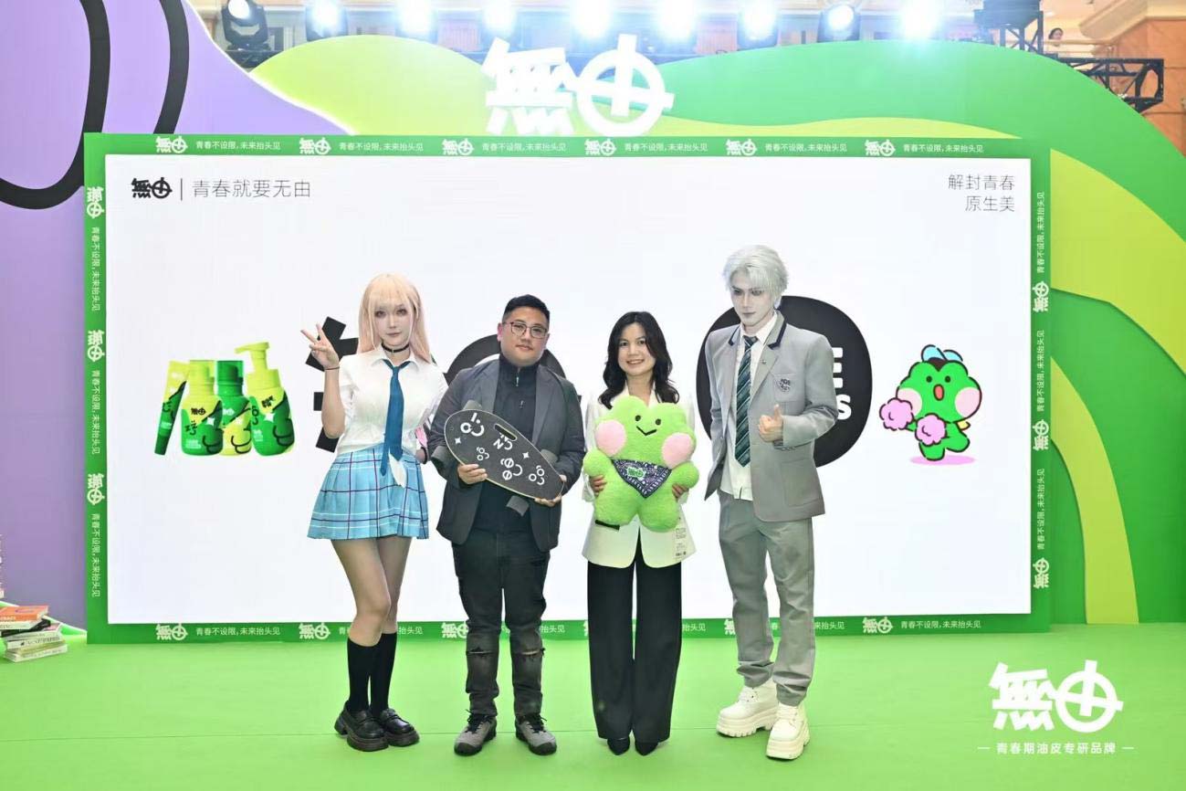 2025年3月1日,無由全球首场快闪店空降上海环球港B2中央广场,并正式在现场发布無由青春期油皮专研全系列。全场以“青春不设限·未来抬头见”为主题,设计充满青春与运动潮流元素,瞬间点燃年轻人打卡拍照的热情。快闪店内设置了多个品牌展示区域、沉浸式产品体验区域、运动装置互动区域以及二次元打卡互动专区,现场更有特邀Cosplay嘉宾与粉丝进行合照握手互动,完美诠释了無由的品牌理念——“青春就要無由”,即一个与青春期同频和共鸣的品牌,与青少年共同热爱,赋能青少年未来。同时,现场也进行了品牌和LINE FRIENDS的战略合作授权仪式。LINE FRIENDS作为全球知名IP,与無由将共同推出minini联名产品系列,用青春期受众喜爱的形象进一步把品牌推向潮玩前线。