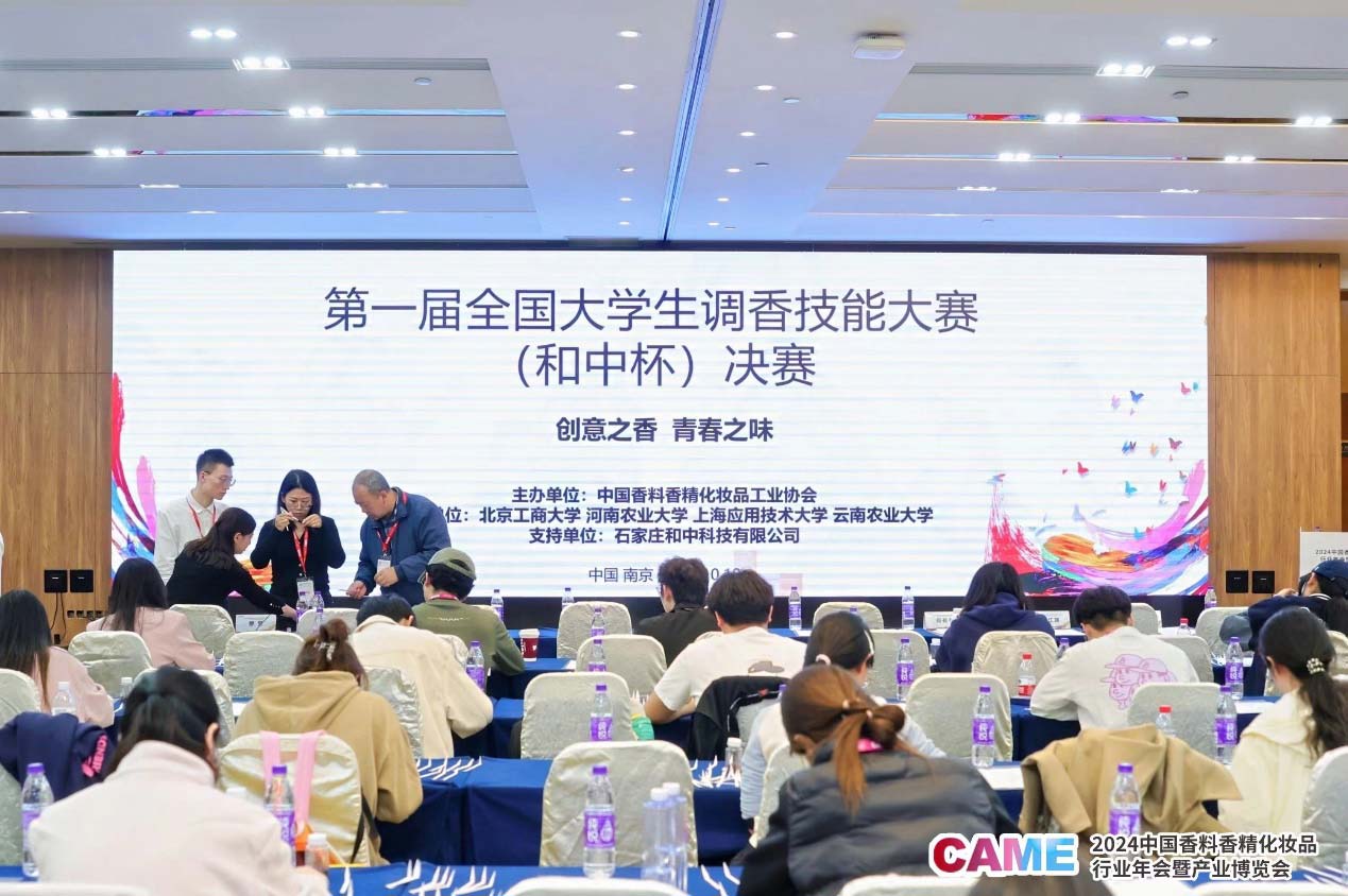 10月19日,以“创意之香 青春之味”为主题的第一届全国大学生调香技能大赛(和中杯)决赛在南京国际博览中心会议中心举办。决赛由中国香化协会主办,北京工商大学、河南农业大学、上海应用技术大学、云南农业大学协办,石家庄和中科技有限公司作为支持单位。决赛现场由云南农业大学烟草学院院长刘雅婷主持。