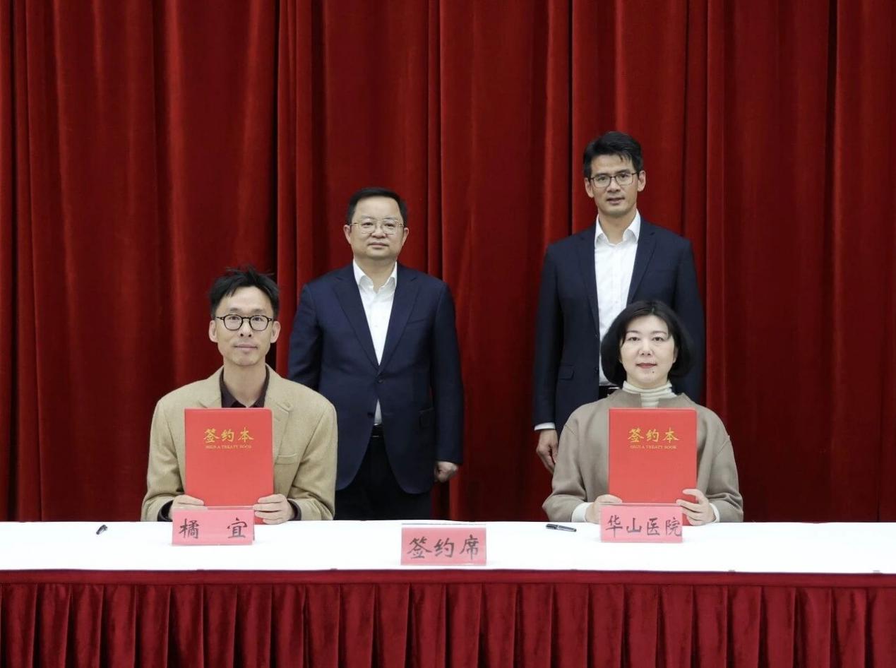 (橘宜集团与复旦大学附属华山医院现场签署了合作意向书)