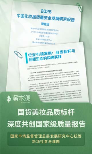 近日,国家市场监管总局发展研究中心在京召开化妆品行业高质量发展研讨会,正式发布《2025中国化妆品质量安全发展研究报告》。报告指出,中国化妆品产业正经历从“规模扩张”向“质量引领”的深刻转型,国货品牌市场份额持续提升,行业质量安全态势总体平稳向好。作为专注敏感肌护理的国货美妆品牌,溪木源深度参与了报告的研讨与共创工作,与安徽理工大学、新华社及多家美妆企业共同组成课题组。其以科研创新和严苛品控为核心的发展路径,为报告提供了具有行业引领意义的实践案例。