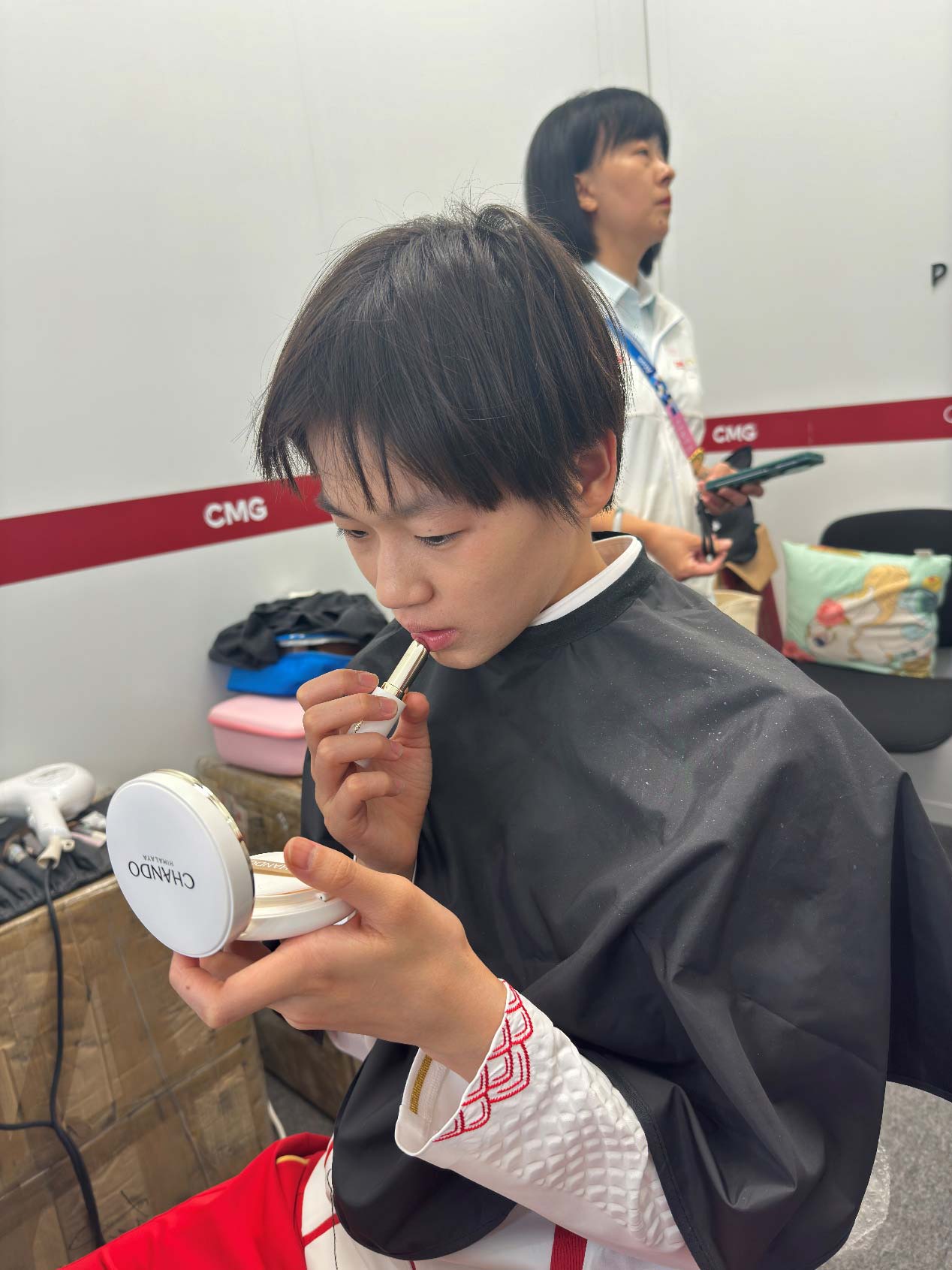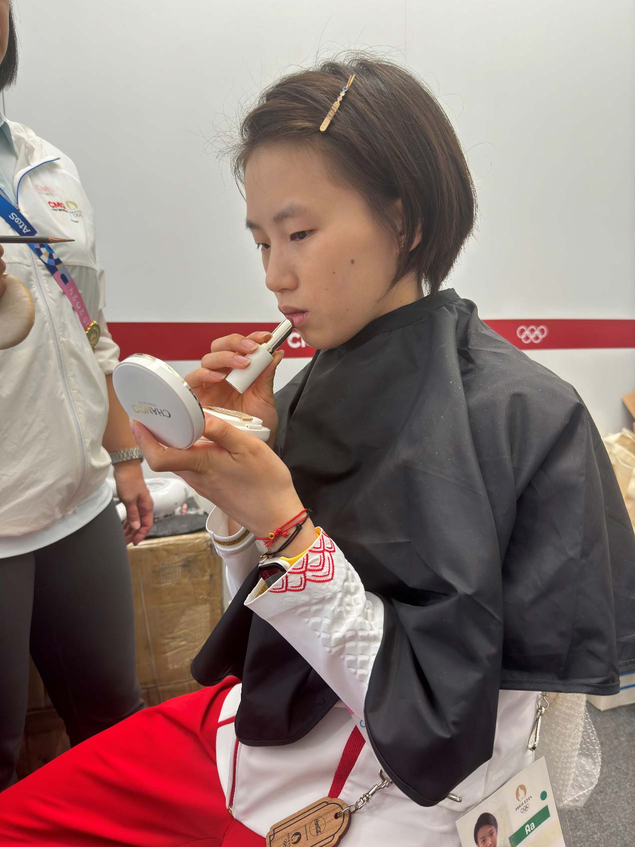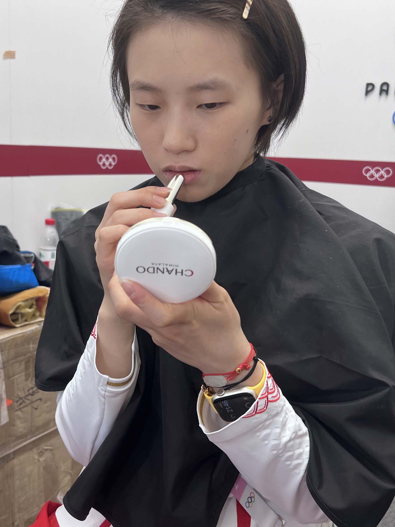 赛后,二人接受央视《五环之约》节目采访,为了在镜头前展示更佳的精神面貌,全红婵和陈芋汐利用空隙时间快速补妆、整理形象,还邀请队友一起拍照留影,记录美好的瞬间。全红婵更是说道:“马上要采访了,要美美哒上场啊!”古灵精怪的模样让众多网友直呼可爱,网友纷纷猜测全妹的口红色号。