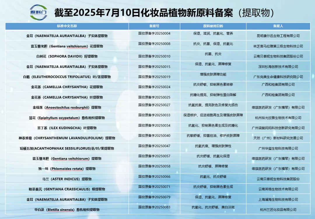 2025年(截至7月10日)植物原料备案同比增长超47%的背后,是中国特色植物资源崛起,是原料企业、品牌方、ODM代工厂等全产业链协同创新的阶段性成果。