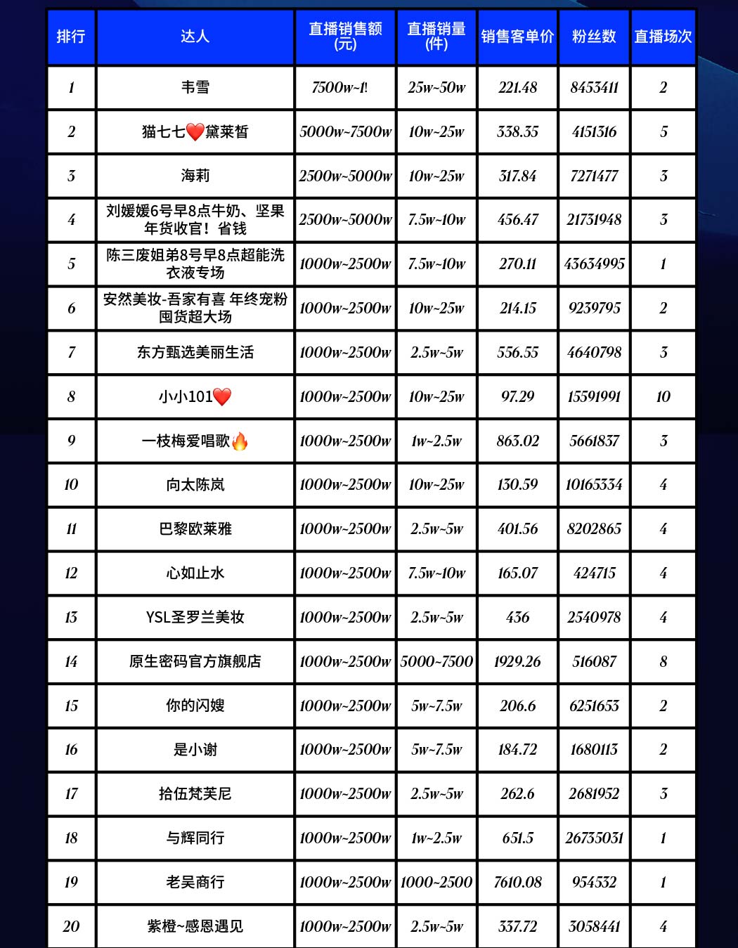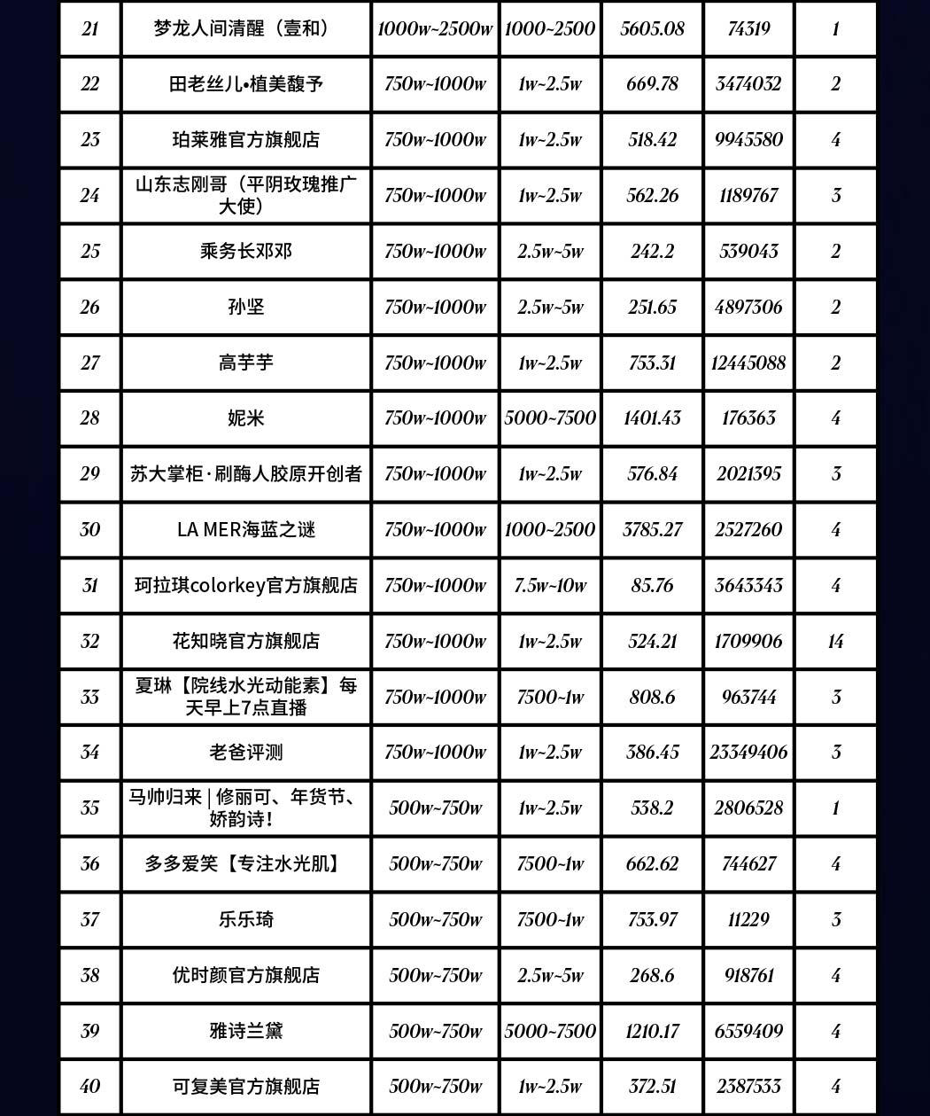 2024年12月|抖音电商美妆护肤带货达人榜TOP50