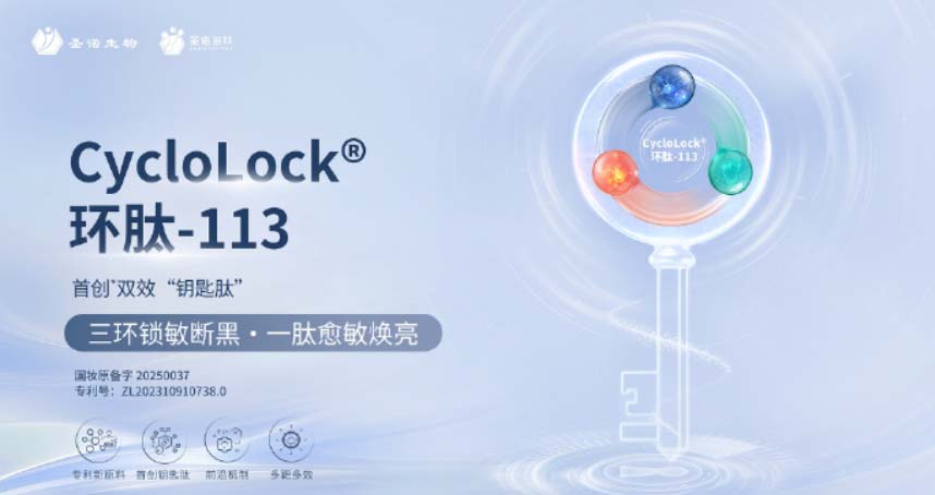 美容肽市场规模持续扩容,环肽凭高稳定性、强靶向性成为热门方向,备案量快速增长,珀莱雅、韩束等品牌已落地应用。圣诺多肽携专利CycloLock®环肽-113亮相PCHi展会,该原料创新“环+线”双肽结构,借鉴医药研发逻辑,可作用多通路实现敏感修护与焕亮,完成多项功效与安全检测并获专利。依托母公司圣诺生物的多肽药企底蕴,圣诺多肽拥有完善研发量产能力,布局50余款美容肽、4款完成备案,以药企标准严控品质,还提供CDMO定制服务,助力国产肽原料创新。