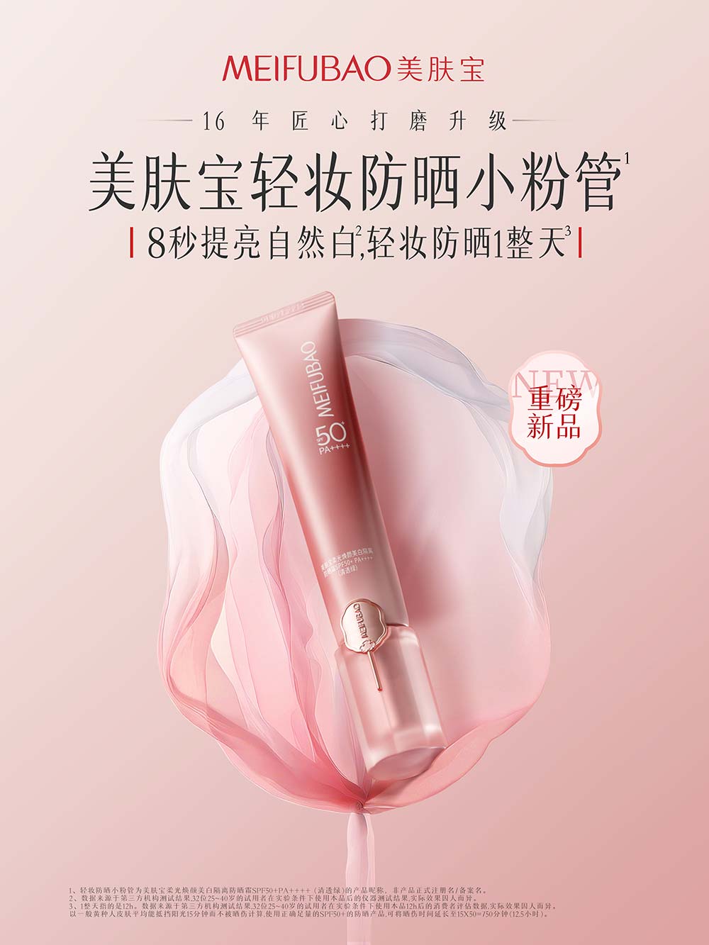 以复兴「不怕晒」为核心,以「华夏不怕晒」为命题,做长线持续性的沟通,美肤宝致力于出现在所有“晒”的场景里,解决每位用户“晒”的问题,让“国民好防晒”不再只是一句承诺,而是随时可见、触手可得的安心选择——你在哪,光在哪,美肤宝就在哪。这不只是美肤宝对产品品质的承诺,同时,也是中国防晒向世界宣告的进取哲学——当五千年文明积淀的韧性与当代中国创新活力相遇,我们终将在时代阳光下,挥洒万千自在的东方大美,绽放出独一无二的光华。