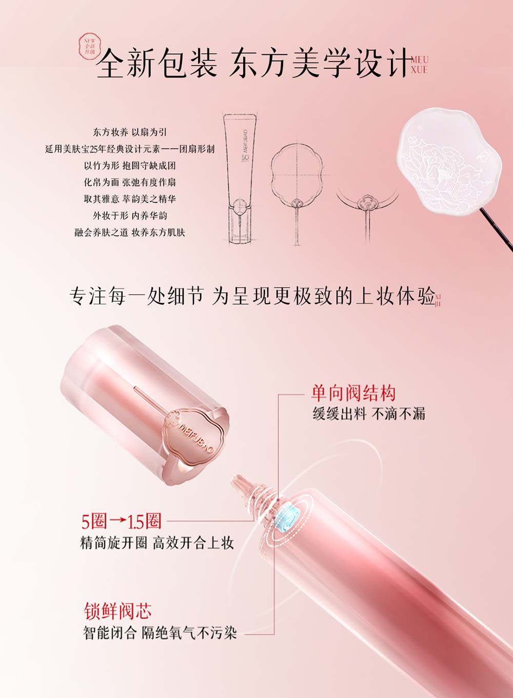 除了不断突破技术壁垒,再次将国货防晒推向新的高度之外,轻妆小粉管在美学上也进行了全新升级,沿用美肤宝26年东方经典设计元素——团扇,以竹为形,化帛为面,将中华民族应对酷暑的生活哲学和外柔内韧、大气典雅的东方美贯彻得淋漓尽致。让中国消费者“怕晒”的焦虑,从产品端开始,就转化为晒美丽、晒自信、晒文化的骄傲。