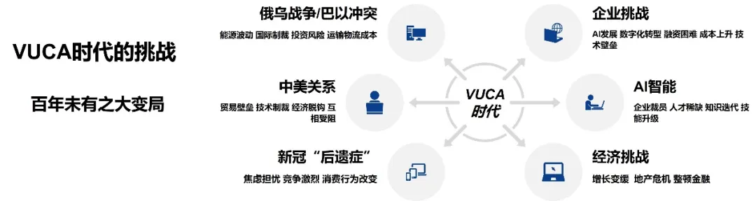 一方面是国际时局多变,无论是新冠“后遗症”,还是俄乌战争、巴以冲突,以及中美关系;另一方面是正处科技变局之际,AI智能等新科技的发展既带来机遇也给企业带来挑战。同时,全球经济形势不振,增长放缓,企业压力加大。这些都在考验着企业和企业家们。