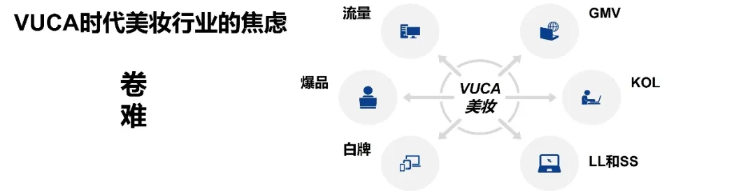 对于香妆行业来说,也是“一半是火焰,一半是冰山”。这个从社会消费品零售总额5月和6月的数据变化可见一斑:5月份化妆品同比增长18.7%,6月份化妆品同比增长-14.6%。而在VUCA时代,美妆行业也不可避免地既“卷”又“难”,为数不少的企业焦虑着爆品、流量和GMV,还有不少的白牌在出现。