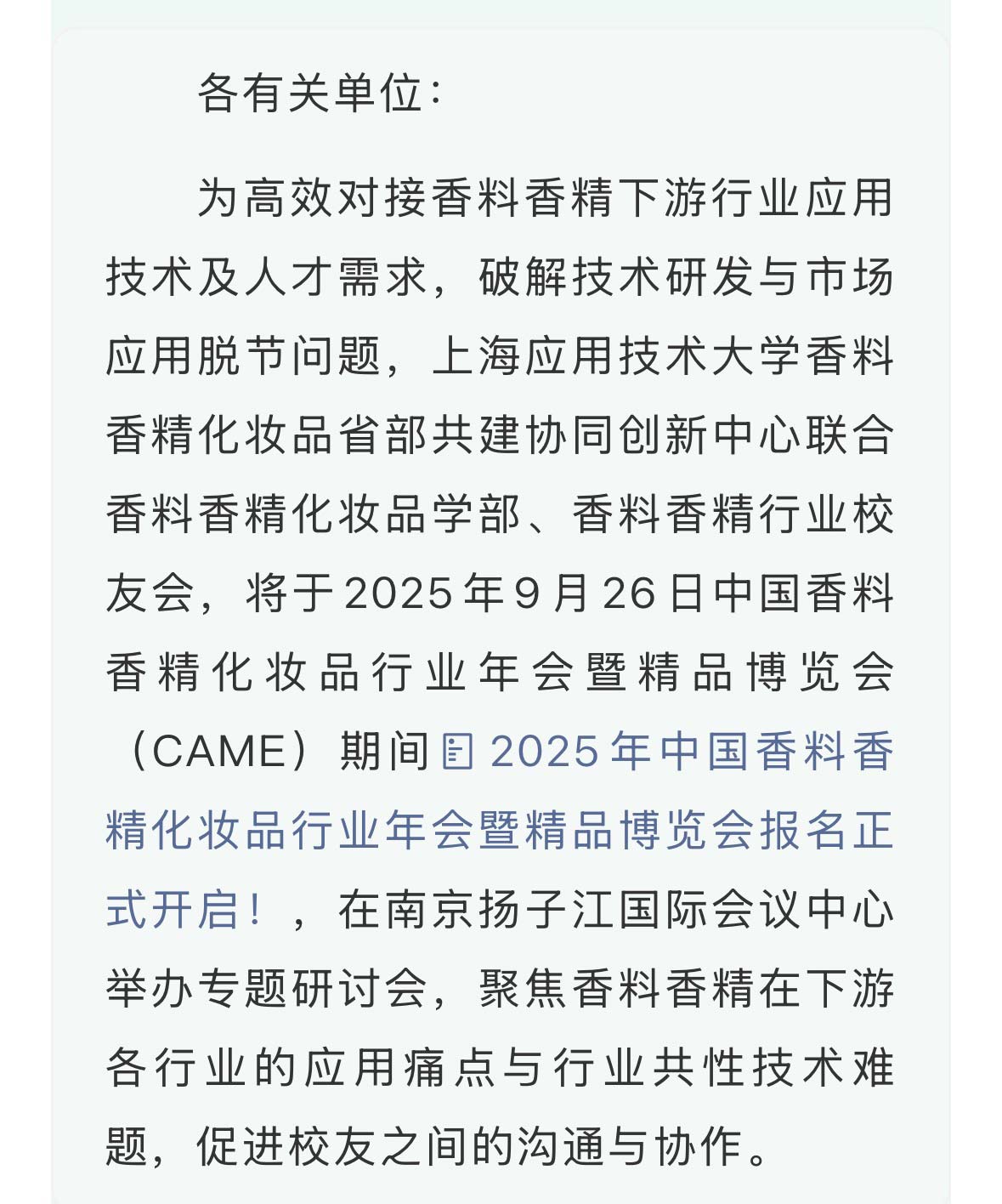 【9月26日,香约南京】关于举办“香料香精应用创新共性技术研讨会”的通知(第二轮)