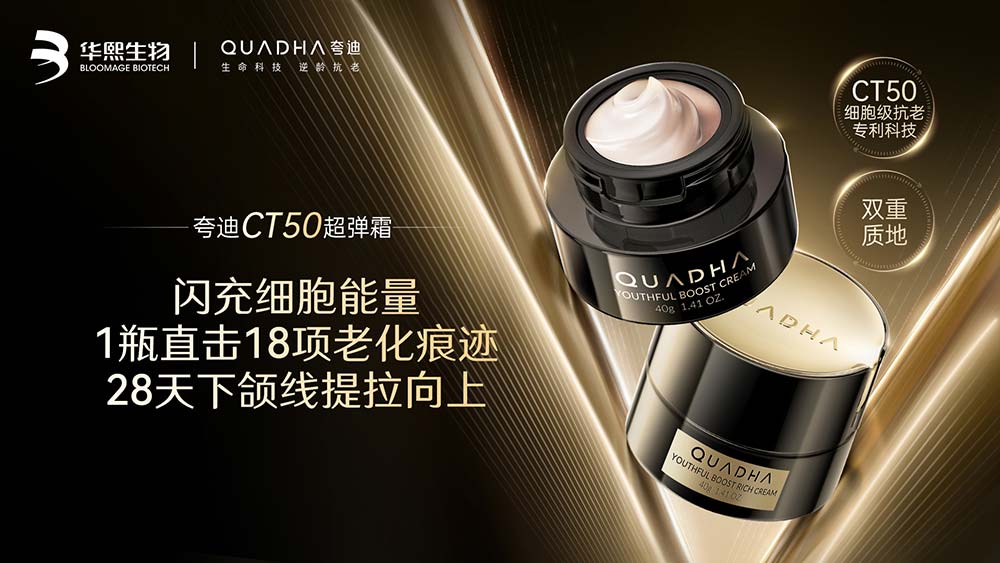 秉持 “生命科技 逆龄抗老” 的品牌定位,夸迪作为细胞线粒体级抗老引领者,凭借华熙生物再生医学前沿科技,为消费者提供根源抗老——从肌底充能,让肌肤紧致弹润,焕亮嫩白,新年礼盒一套搞定!夸迪以这份科技抗老厚礼,帮你抵御时光侵袭,让你拥有掌握时间的底气。