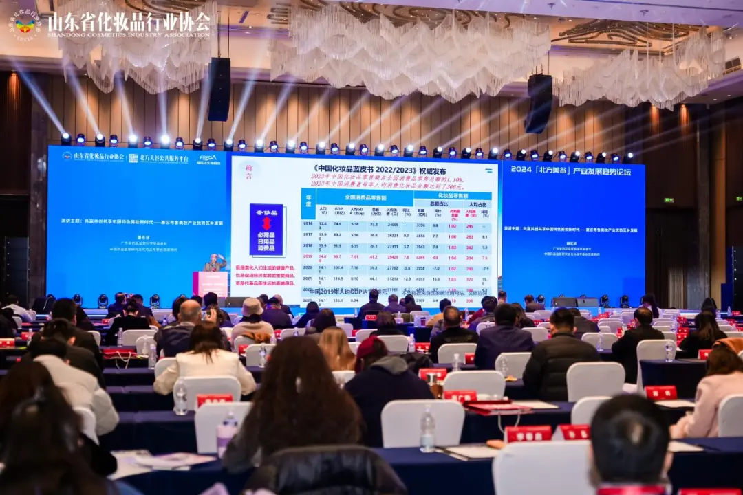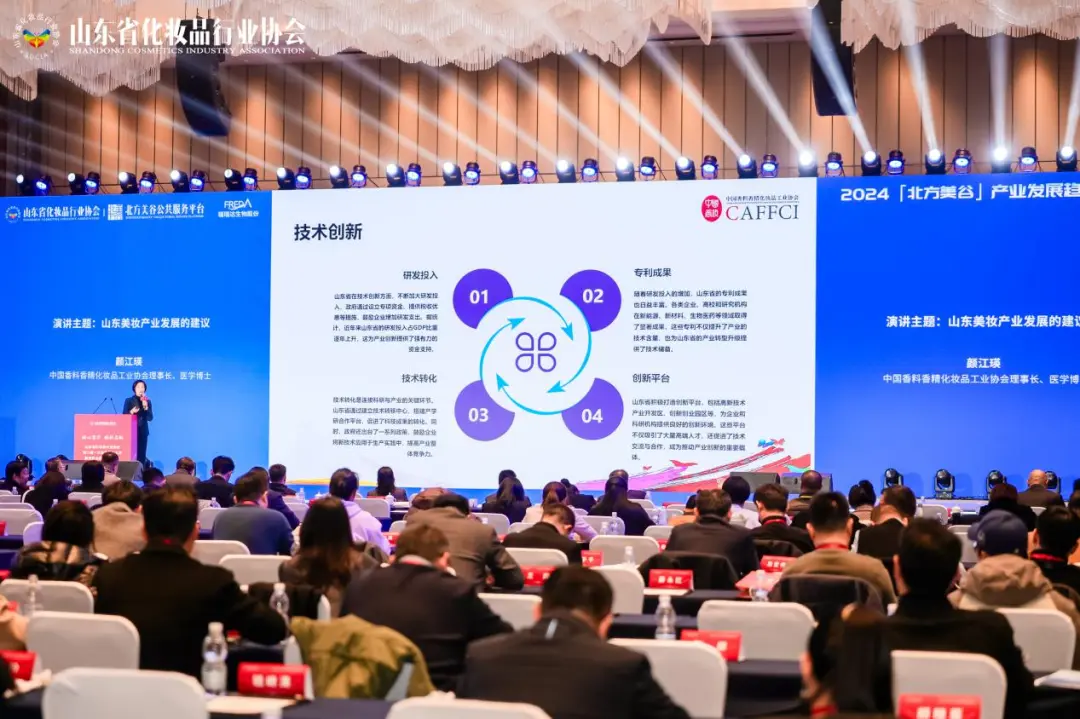 “创新驱动·产业引领”。11月29日,由山东省化妆品行业协会支持、山东福瑞达生物股份有限公司主办的2024“北方美谷”产业发展趋势论坛在济南召开。中国香料香精化妆品工业协会理事长颜江瑛、广东省药品监管科学学会会长谢志洁、山东福瑞达生物股份有限公司董事长高春明等行业专家及300余位企业代表出席论坛。论坛由中国香料香精化妆品工业协会产业研究中心主任姚永斌主持。