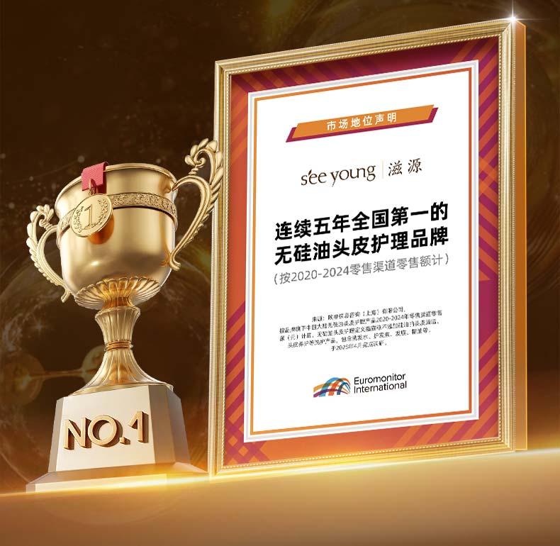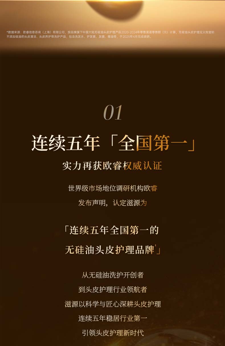 欧睿权威认证|滋源连续五年全国第一无硅油头皮护理品牌