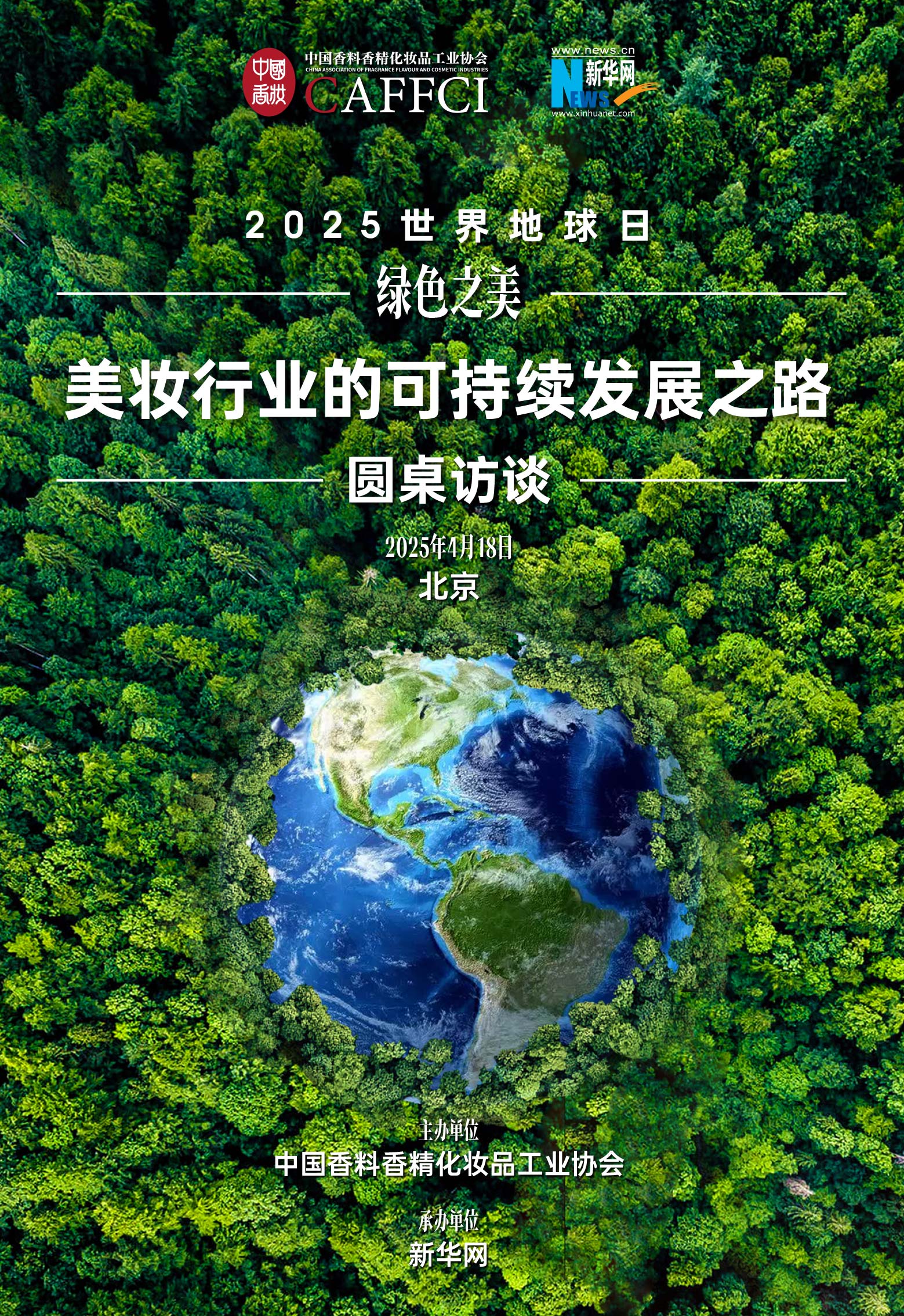 在世界地球日(Earth Day)即将来临之际,中国香料香精化妆品工业协会(简称:中国香妆协会)联合新华网共同开展的以“绿色之美:美妆行业的可持续发展之路”为主题的2025年世界地球日圆桌访谈活动将于4月18日在新华网举行。