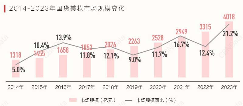 2014-2023年国货美妆市场规模变化