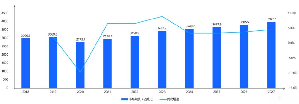 18-27年全球美妆市场规模及预测增长情况