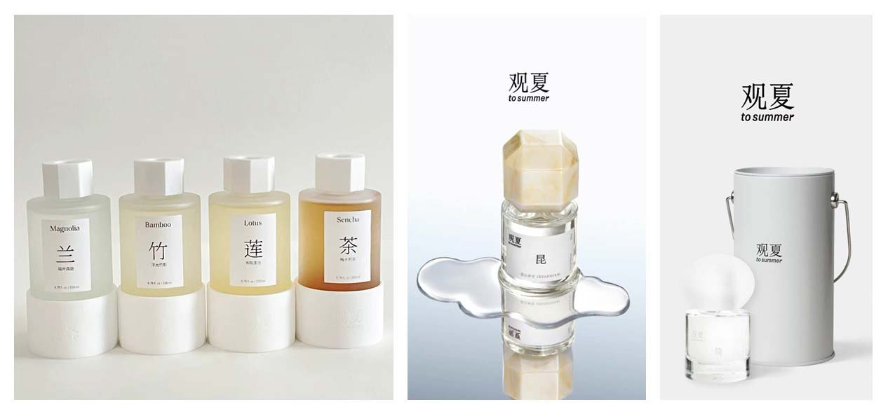 而2019年横空出世的品牌观夏,从东方植物的香气打造到与东方文化、故事的深度融合。之前市场类似品牌的故事基本来自于西方,还没有品牌把东方的故事讲好,即找到独属于东方的关于“香”的意象。观夏让香贴近国人的嗅觉体验与记忆,回归传统文化,挖掘东方内涵。东方的新摩登主义,从东方的文化历史中寻找,「香味」有关的故事进行创作和表达,深涵中国传统文化精髓。