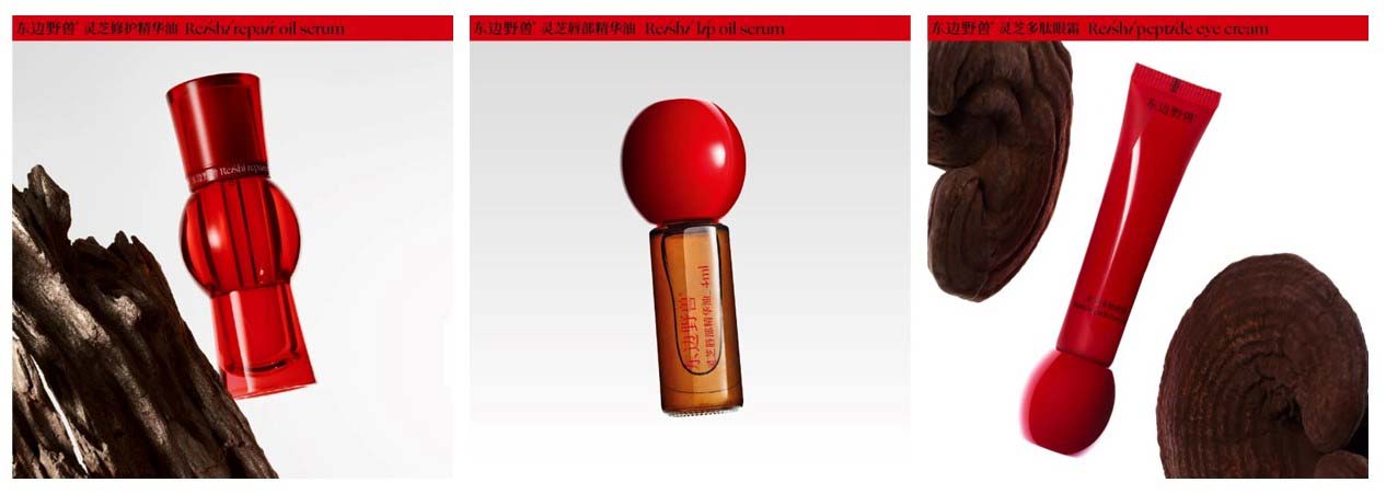 在产品成分方面,东边野兽选取松茸、普洱、高原红玫瑰、灵芝等打造具备「东方标识性」的护肤产品。在产品设计上,东边野兽秉持「东方美学理念」,采用极富东方韵味的红色作为品牌主色调,饱含冲击力的色彩能迅速吸引消费者注意,充分展现“真诚、勇敢、浪漫”的品牌调性。