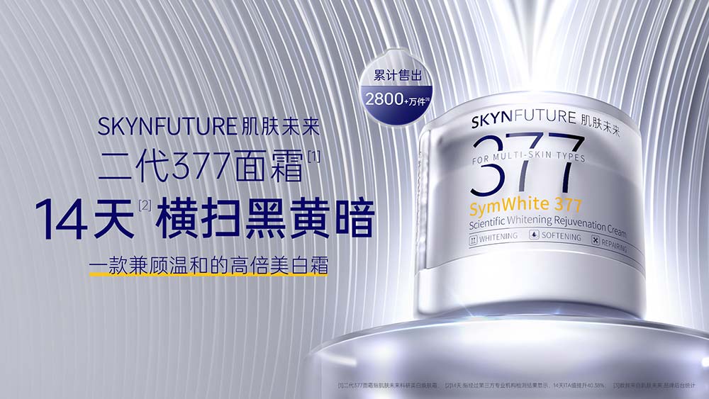 据悉,肌肤未来全线科学美白产品,已累计卖出1亿+瓶[2];其中377面霜自面市以来,创下每天售出超20000瓶[3]的傲人战绩,强势锁定377科学美白赛道TOP1。它不仅是消费者用口碑投票的“美白首选