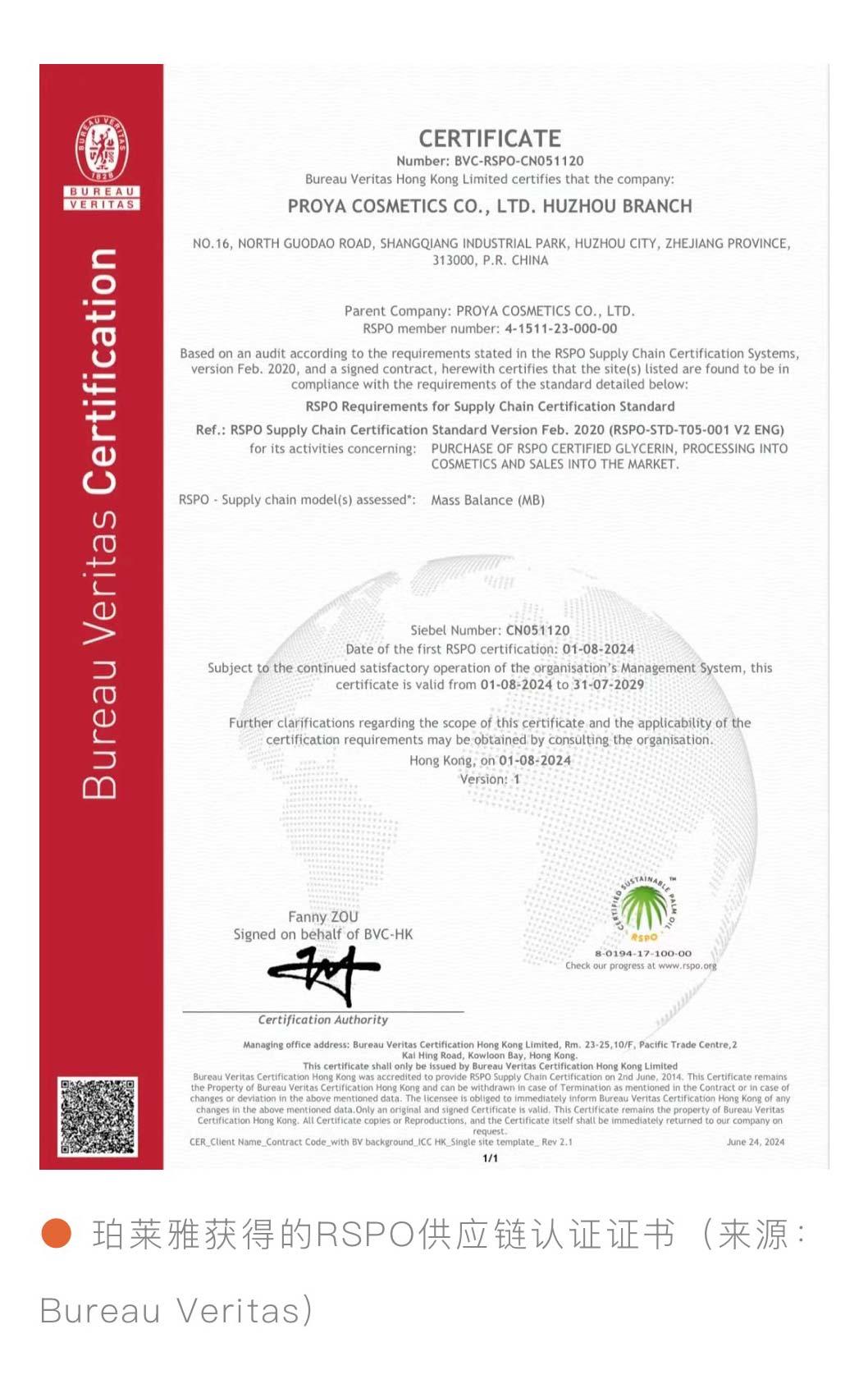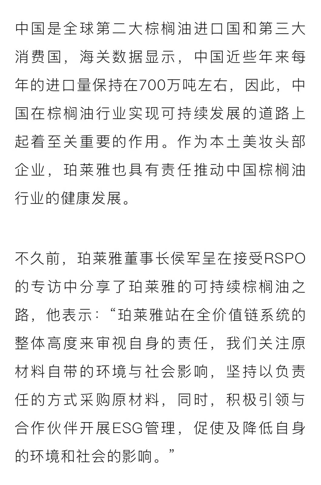 可持续升级! 珀莱雅通过RSPO供应链认证