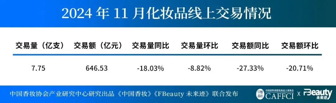 受各大电商平台双11提前进行带来的影响,消费力被提前释放,今年11月线上美妆交易额同比出现较大下滑。