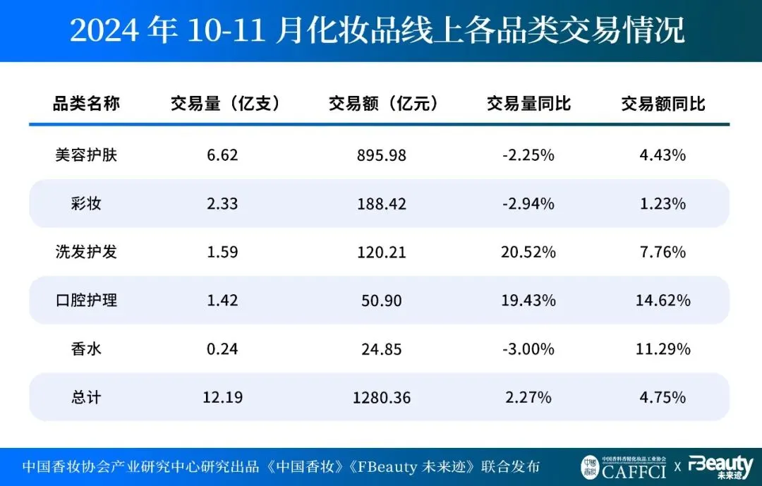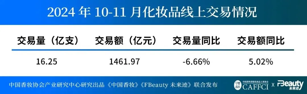 数据显示,10月和11月的线上化妆品共实现交易额1461.97亿元,同比上升5.02%,表现出了十足的增长韧性。
