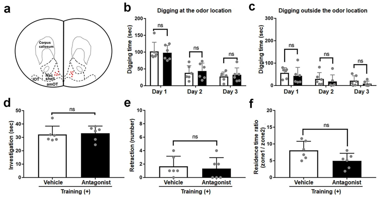 接着,科研人员给8周龄的小鼠进行了一场“小手术”——在它们的大脑双侧amOT、lOT或NAc壳区域植入药物套管,就像给大脑装上了一个个“小通道”,方便后续注入实验药物。手术后,小鼠需要两周时间恢复。
