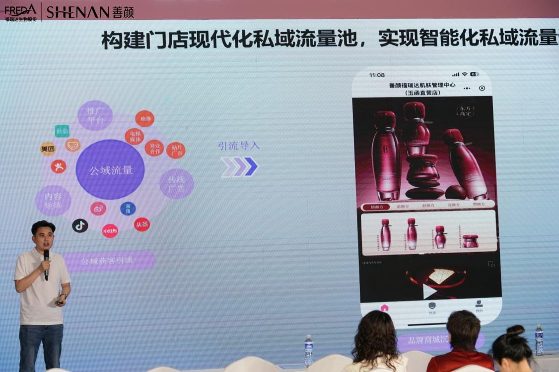高级产品经理刘璇在当日重磅发布全新院线项目——善颜「AI细胞焕活管理」,详细阐释其创新技术突破,通过无创微电流技术模拟人体生物电场,与肌肤细胞共振打开离子通道,激活细胞级能量循环,以零痛感、无恢复期的优势,达到即时淡纹紧弹的效果,重新定义高端定制化护理范式。同步升级的「多维抗皱紧致套盒」搭载Tri-BioBoost®靶向抗衰专利,在线粒体层面完成细胞级能量调控。有赞官方大区总监殷前成则深度剖析数字化运营生态,通过构建直播引流、短视频内容深化专业形象、数字化平台促成转化的闭环体系,为大家深度呈现新一代数字化美业连锁的智能运营方案,助力门店全方位降低获客成本。