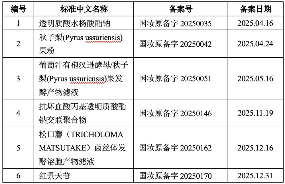 截止日前,华熙生物已完成12款化妆品新原料备案,2025年完成了6款化妆品新原料备案(详见下表1)。