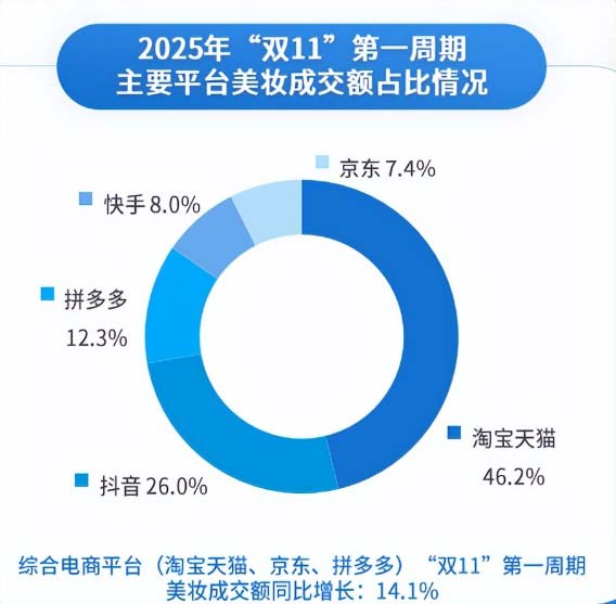 2025年,双十一购物节迎来第十七个年头。全网零售额近2.4万亿元,同比增长超10%再创新高。其中,美妆品类表现突出,在高端化与“成分党”理性消费两大趋势的拉动下,成为观察双11线上市场活力的重要窗口。
