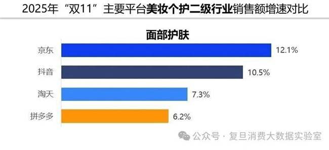 4. 2025双11美妆线上消费洞察:京东面部护肤品类领涨 增速超过天猫、抖音