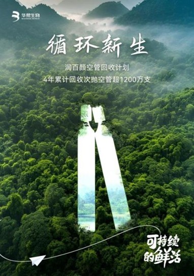 华熙生物重视在C端消费市场和消费者共同践行绿色低碳循环的可持续消费。其中最具影响力的项目便是旗下品牌润百颜的次抛空管回收计划。