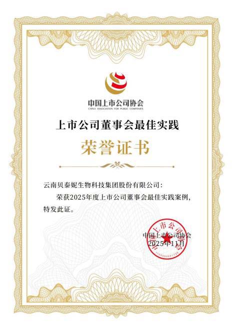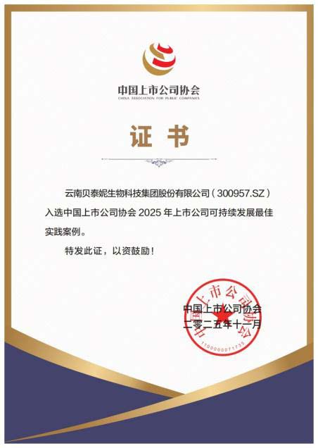 时至冬令,佳音迭传。贝泰妮集团在可持续发展与企业治理领域的系统实践再获权威印证,近期接连斩获三项殊荣——入选中国上市公司协会“2025年上市公司可持续发展最佳实践案例”,获评该协会“2025年度上市公司董事会最佳实践案例”,并成功入选华夏时报“2025年度华夏ESG蒲公英典型案例”。三项认可分别从绿色发展、治理效能与社会责任三大维度,共同勾勒出贝泰妮作为中国化妆品行业标杆企业的综合实力与可持续发展底色。
